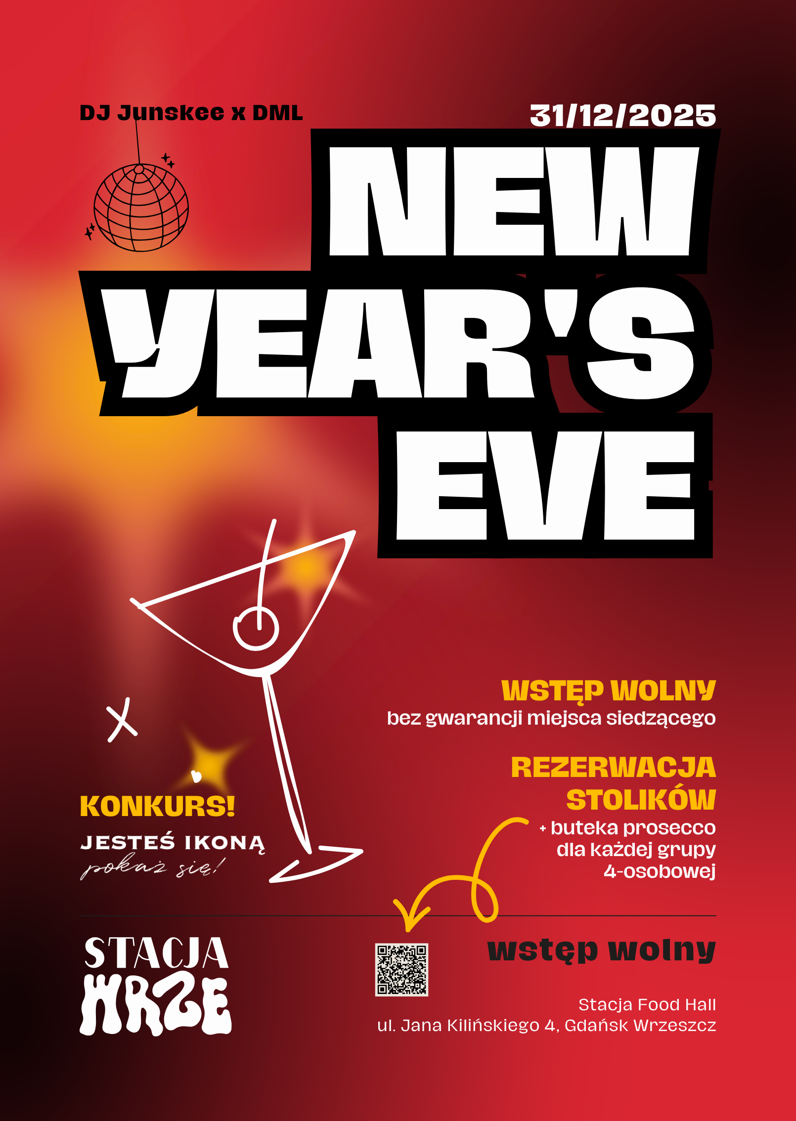 Sylwester w Stacji Food Hall to nie tylko jedzenie, ale również wspaniała muzyka! Na scenie zagości DJ DML oraz DJ Junskee, którzy zapewnią niezapomniane taneczne rytmy. To doskonała okazja, aby zatańczyć i rozpocząć Nowy Rok w najlepszym stylu!