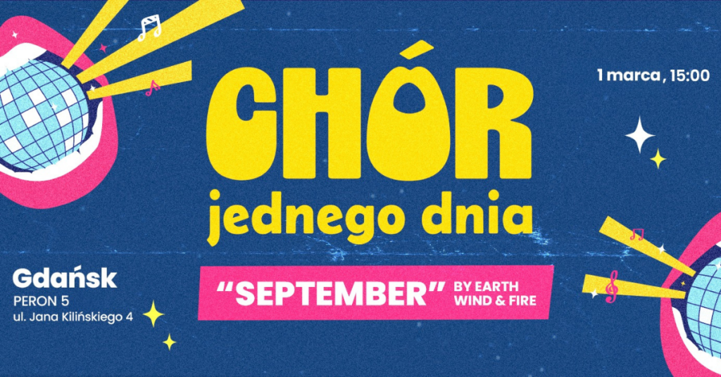 01.03 | Chór Jednego Dnia – September: Zaczynamy miesiąc od potężnej dawki endorfin i wspólnego śpiewu hitu grupy Earth, Wind & Fire. Pod okiem trenerów każdy może poczuć się częścią wielkiego, harmonijnego zespołu. To idealna okazja, by bez stresu przełamać bariery i po prostu cieszyć się muzyką. ZAREZERWUJ MIEJSCE W CHÓRZE