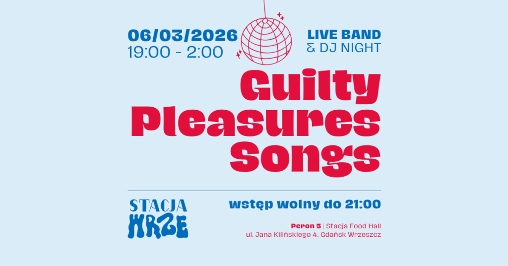 06.03 | GUILTY PLEASURES SONGS: Wieczór z utworami, które wszyscy znamy i kochamy śpiewać, choć nie zawsze się do tego przyznajemy. Live band porwie Was do tańca przy największych hitach popu i disco, które gwarantują uśmiech na twarzy. Do godziny 21:00 wstęp na to wydarzenie jest całkowicie wolny! SPRAWDŹ SZCZEGÓŁY