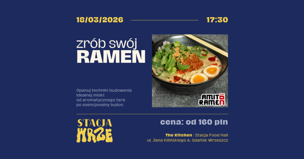 18.03 | Zrób ramen z AMITORAMEN: Odkryj sekrety przygotowania autentycznego japońskiego ramenu pod okiem ekspertów i naucz się od podstaw budować głęboki smak tej kultowej potrawy. Podczas warsztatów zgłębisz tajniki esencjonalnych, długo gotowanych wywarów oraz dowiesz się, jak idealnie balansować dodatki i makaron, by stworzyć kompozycję pełną umami. To doskonała okazja, by zyskać pewność siebie w kuchni i nauczyć się odtwarzać restauracyjną jakość we własnym domu. Zapraszamy na kulinarną podróż, która na zawsze zmieni Twoje podejście do azjatyckich smaków.. OPANUJ SZTUKĘ RAMENU